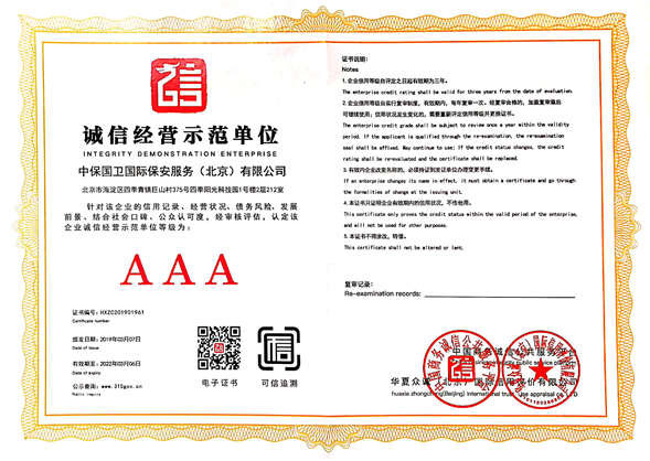 中保國衛(wèi)國際保安服務(wù)(北京)有限公司,屬中保國衛(wèi)集團(tuán)旗下子公司。能全方位的為大型客戶提供優(yōu)質(zhì)的安保、押運(yùn)服務(wù),是集人防和技防于一體的新型正規(guī)化綜合安保押運(yùn)服務(wù)企業(yè),提供人防、物防、技防、聯(lián)網(wǎng)報(bào)*、非武裝押運(yùn)等安防相關(guān)的一站式服務(wù)。